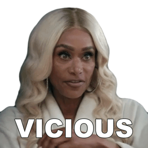 Tami Roman as Chantel from Haus Of Vicious, looking intense as the word 'VICIOUS' appears on screen, conveying a strong emotion.