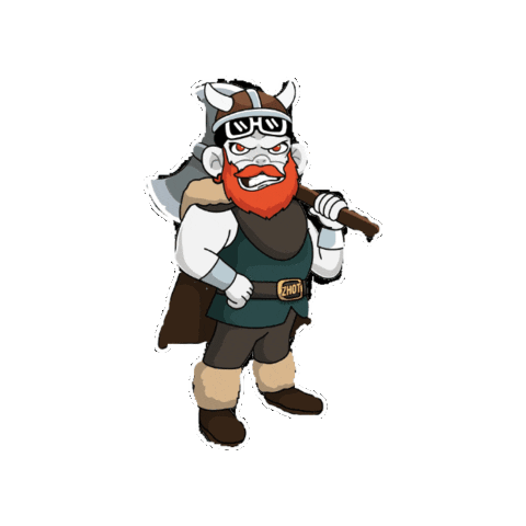 A fierce animated sticker of Zhot, the Viking Berserker, wielding a massive axe and sporting a horned helmet and cool sunglasses.