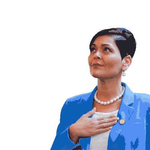 Hala Ayala, Lieutenant Governor candidate, stands with hand over heart, showing pride for Virginia.