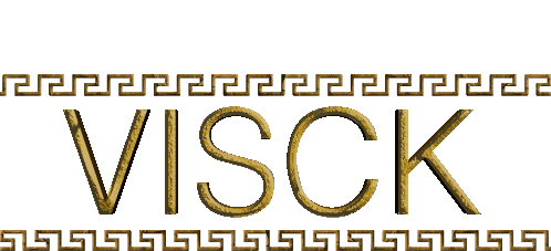 Visck 3D gold text spinning between decorative Greek key borders on a white background.