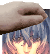 A hand playfully reveals and covers a picture of Vlov, the character from the Tsukihime game series.