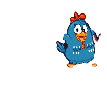 Galinha Pintadinha batendo as asas alegremente, pronta para voar e expressar um humor leve e energético.