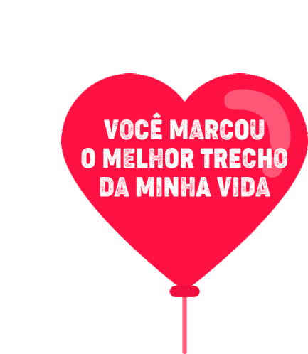 A vibrant red heart balloon sticker with the Portuguese message 'Você Marcou o Melhor Trecho da Minha Vida'.