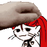 Argemia gently pets a cartoon cat with distinctive red hair, from Voices of the Void.