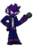Void Fnf pixel art character holding a microphone, experiencing a sudden, bright explosion.
