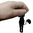 An animated sticker featuring a hand gently holding the silhouette of Voidend, the Lovesick Loser, characterized by a distinctive squirrel tail.