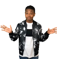 Amarr Wooten performs a playful shrug, then raises his hands in a 'voila' or 'hello' gesture with a mischievous expression.