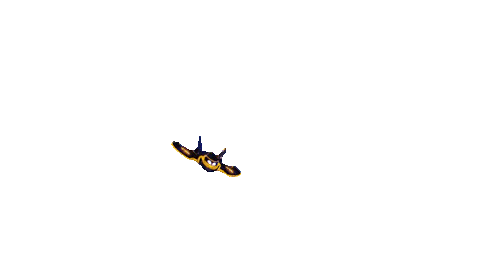 Batwing El Batavión, the character from Batwheels, flies at full speed, gliding and hovering through the air.