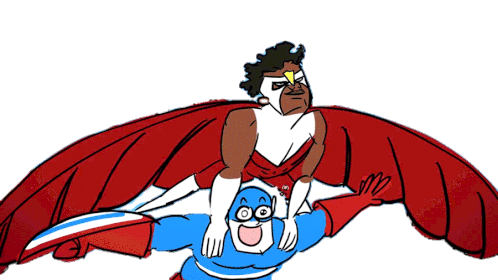 Destripando La Historia's Captain America and Falcon fly together, with Falcon riding on Captain America's back.