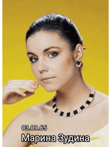 a woman wearing a necklace and earrings has the date of 03/09/65