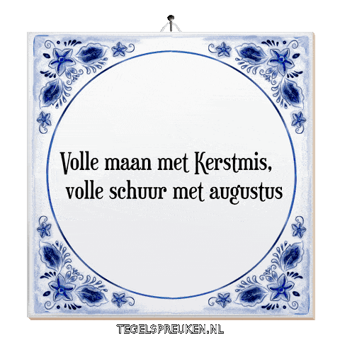 a blue and white tile with the words volle maan met kerstmis volle schur met augustus on it
