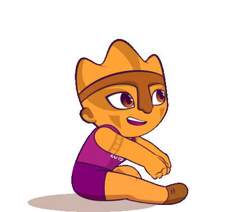 Animated mascot from Lima 2019 Pan American Games stretching, ready to play volleyball. Energetic and sporty.
