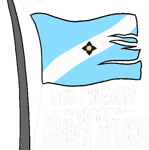 A waving Madison, Wisconsin flag with the text "Our Freedom To Vote Is Under Attack," promoting voting awareness.