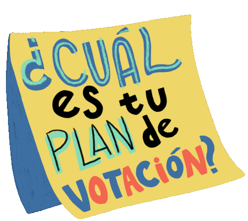 A vibrant sticker asking 'What is your voting plan?' in Spanish, encouraging participation during election season.