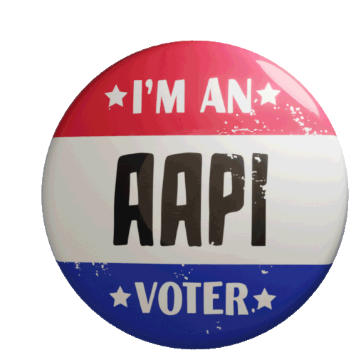 Animated sticker of a rotating political button with 'I'M AN AAPI VOTER' text, perfect for election season and civic engagement.