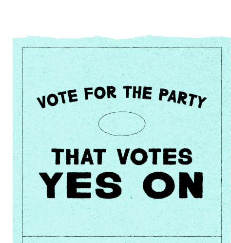Animated sticker encouraging voters to support a party that votes yes on good paying union jobs, lower prescription drug prices, student debt relief, and reducing inflation.