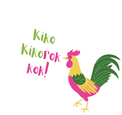 Animated sticker for Kiko Pangilinan, featuring a colorful rooster crowing 'Kiko Kikorok kok!' a playful nod to the Vice President campaign.