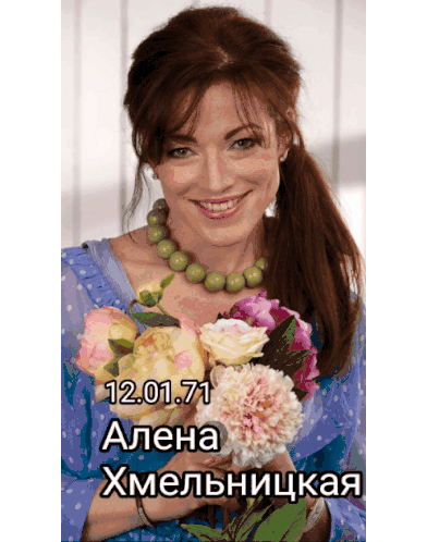 a woman in a blue dress is holding a bouquet of flowers with the date 12.01.17