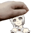 Neita Vermillion from Team Hope receives a cute headpat in this VRChat pixel art sticker.