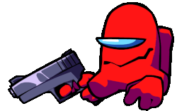 Red Among Us Impostor FNF character holding a gun, ready for action.