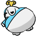 Vtuber Ami, a cartoon whale with a wind-up key, performs a playful dance, bringing a fun and energetic mood.