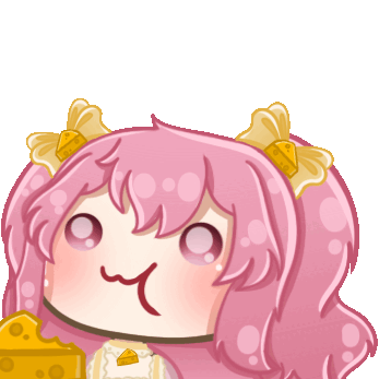 Ssumbaka, the pink-haired Vtuber anime girl, happily eats a piece of cheese in this charming animated sticker.