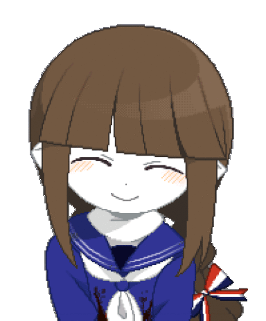 Wadanohara Wadda, Marabelle, and Syakesan smile happily in this pixel art anime sticker, wearing a blue sailor uniform.