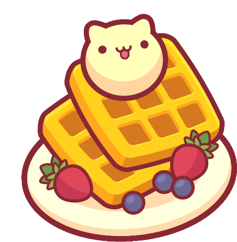 A mouth-watering animated sticker of golden waffles topped with a scoop of melting vanilla ice cream and chocolate drizzle.