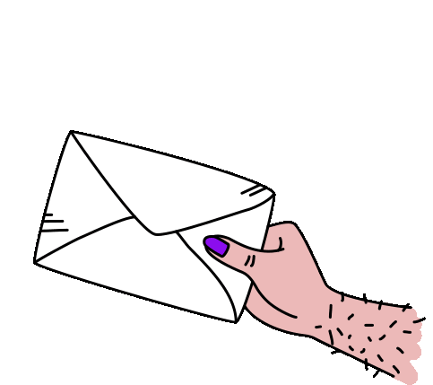 Animated sticker of a hand holding a white envelope, representing a postal vote or 'Briefwahl' for an election.