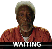 Morgan Freeman, as Thaddeus Bradley, patiently waits with 'WAITING' text, from Now You See Me.