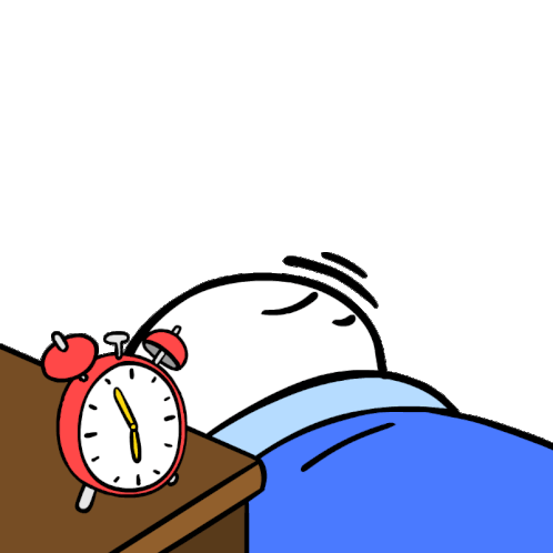 A cute ghost character is startled awake by a loud alarm clock, ready to start the day.