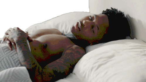 Justin Rarri wakes up in bed, looking sleepy, and covers his face with his hands in a relatable morning facepalm.