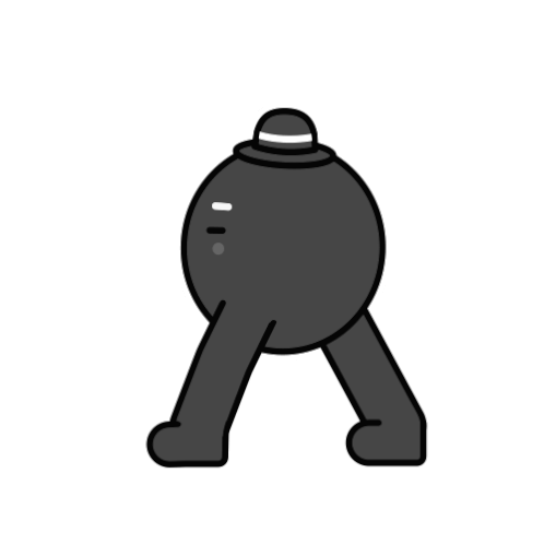 a cartoon drawing of a black ball with a top hat on