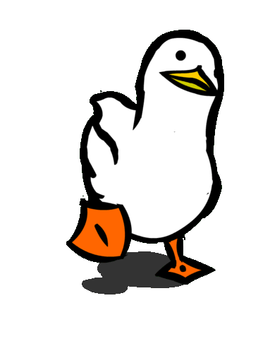 A charming animated sticker featuring a simple white cartoon duck with a yellow beak and orange legs, happily walking.