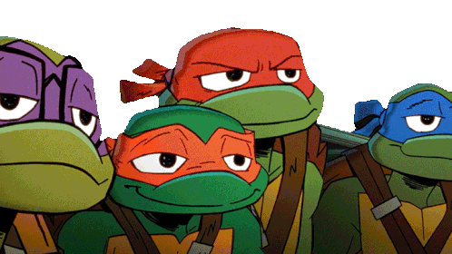 Donatello, Leonardo, Raphael, and Michelangelo of the Teenage Mutant Ninja Turtles ready for action. Let's do this!