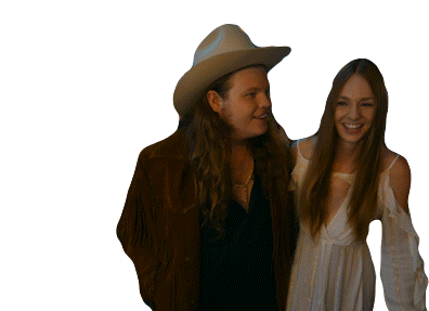 Marcus King and a woman walk together, smiling and laughing, enjoying a happy moment outdoors.