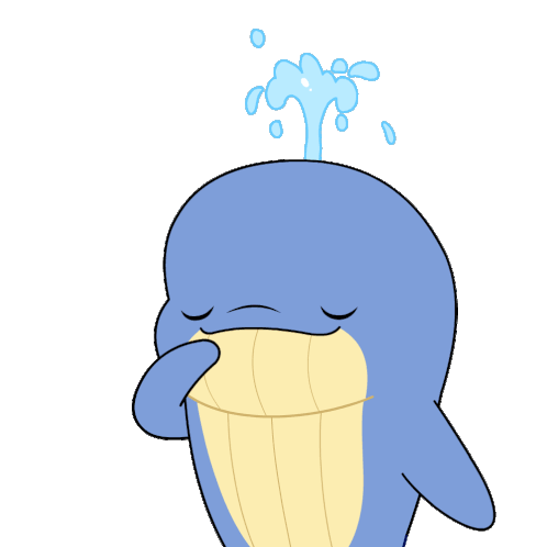 Wally Rwa, the cute blue whale, blushes shyly, blows a kiss, and holds a small red heart.