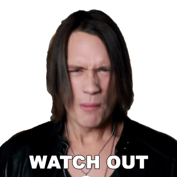 Pellek, the musician, makes an intense 'Watch Out' expression, first squinting then shouting, conveying a warning.