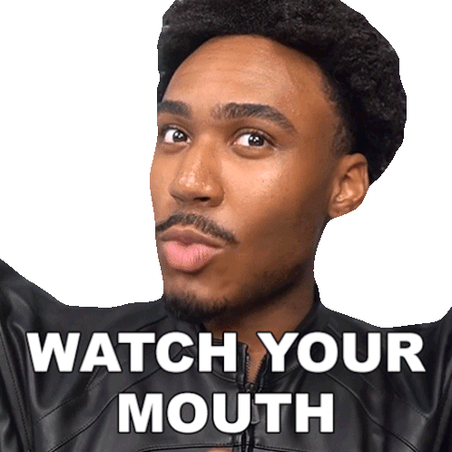 A man with a mustache in a leather jacket warns 'Watch Your Mouth' with a sassy expression.