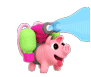 Rosa The Pig, equipped with a water gun backpack, sprays water to cool off in a fun splash.