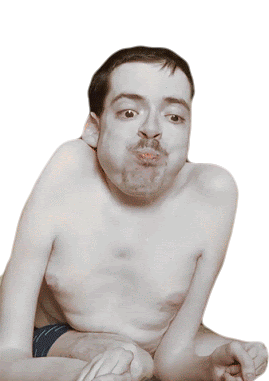 Ricky Berwick makes a playful funny face, puffing out his cheeks and letting water spill or spit from his mouth.