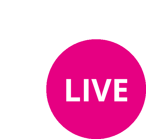Watson Watson News Live button sticker, a vibrant pink circle with white 'LIVE' text and a small dot.