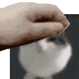 Animated sticker of a Wawa Cat's face being gently petted by a human hand.