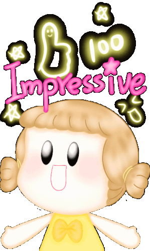 Wawa Wawaplushiebaby sticker featuring a cute cartoon girl with pigtails, glowing text 'Impressive', 'B', and '100' above her head.