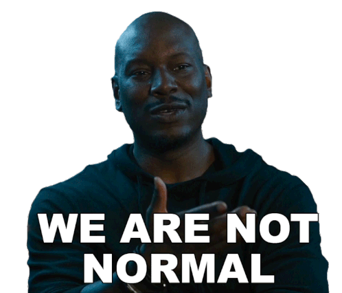 Tyrese Gibson as Roman Pearce from Fast & Furious declares "We Are Not Normal" with a confident gesture.