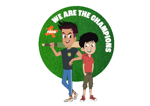 a cartoon of two boys with the words " we are the champions " written around them