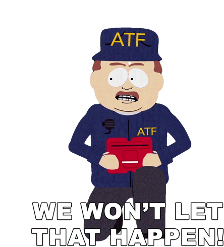 South Park's ATF Commander Danny Ganz declares, 'WE WON'T LET THAT HAPPEN!', holding a red folder.