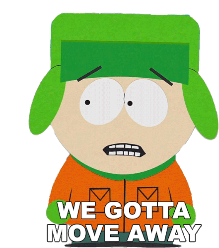 Kyle Broflovski from South Park, with a worried expression, declares 'We Gotta Move Away' in this animated sticker.