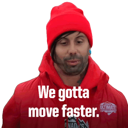 Brandon Rodwell, wearing a red beanie and jacket, urges 'We gotta move faster.'