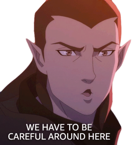 Vaxildan from The Legend of Vox Machina expresses caution, stating 'We have to be careful around here'.